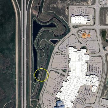 Cross Bass Pro Way by crosswalk into the well-maintained Rocky View County park. Follow the bike and pedestrian path south from the crosswalk to where it passes between the largest stormwater retention pond on the west and Nose Creek on the east.