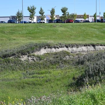 Along Nose Creek there are several cutbanks exposing the Balzac till as well as overlying glaciolactustrine sediments and underlying sandstone bedrock. Note that the till is not present everywhere.