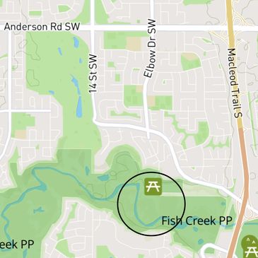Go south on Elbow Drive SW from Anderson Road South. Park at Votier's Flat Day Use Area